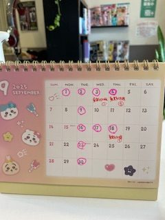 8月と9月は夏季休暇で5日間、バラバラにお休みをいただきます。