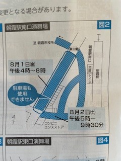 8月1日~3日まで、朝霞は彩夏祭りで、交通規制があります。